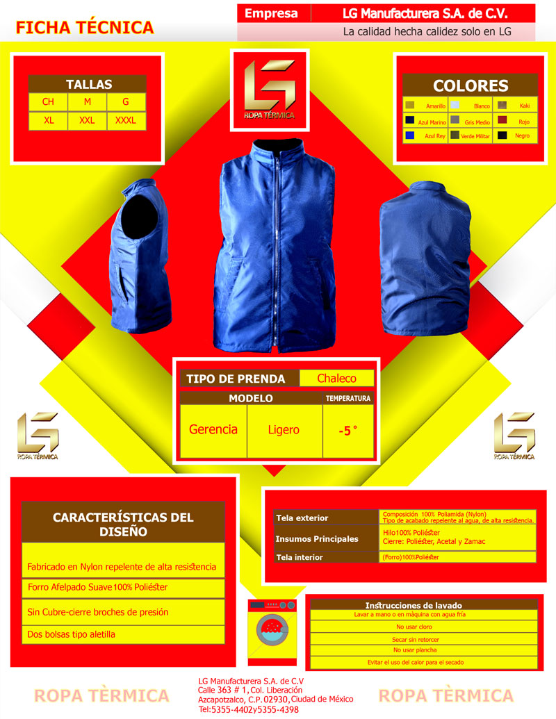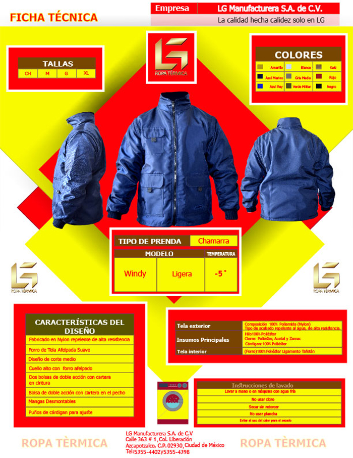 LG Manufacturera S.A. de C.V. fue fundada desde 1992, con el propósito de fabricar ropa especializada para bajas temperaturas.